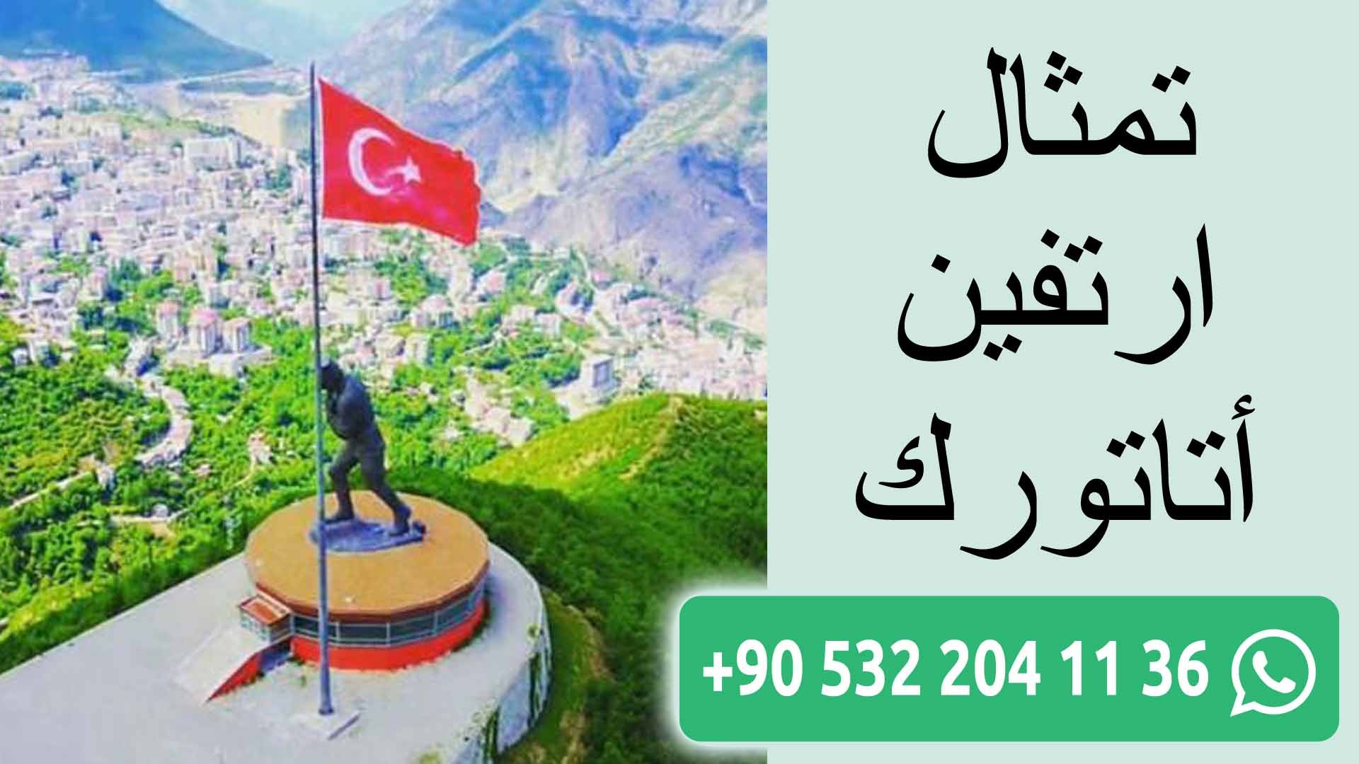 أتاتورك هو القائد الشهير الذي أنقذ تركيا من احتلال العدو وكان أيضًا من حفظة القرآن الكريم. اسمه الكامل هو مصطفى كمال أتاتورك. للترويج لأتاتورك، تم بناء أكبر تمثال لأتاتورك في العالم في أرتفين، المقاطعة الحدودية التركية مع جورجيا. يقع في منطقة مولازيب في حي شيهيتليك في مقاطعة أرتفين. الشخص الذي ساعد في بناء النصب التذكاري، الذي تم افتتاحه في ١٩ مايو ٢٠١٢ ، هو سيتكي كاهفيسيوغلو. تم بناء المبنى التذكاري على شكل ١٦ جينة لتمثل الولايات التركية الـ ١٦ التي تأسست عبر التاريخ. التشمثال موجود على المبنى. الوزن الإجمالي للعمودين داخل المبنى ٤٠٠ طن. تم تجهيز الجزء الداخلي من النصب التذكاري من ٥٢ أنبوبًا فولاذيًا ١٤٨٠ قطعة من الفولاذ تزن ٥٠ طنًا. تم استخدام ١٠ طن من صفائح النحاس. ويبلغ وزن التمثال ٦٠ طنا. يتكون فستان تمثال أتاتورك من ١٢ قطعة. دعونا نلاحظ أن الهيكل المعدني للنصب التذكاري العملاق صنعه مورال ديمير في ريزي أرديسن. بالمناسبة، دعونا نتوسع في الحديث عن الرقم ١٢ قليلاً. يوجد في قبر أتاتورك، أنيتكابير، في أنقرة، ١٢ أسدًا على اليمين و١٢ أسدًا على اليسار. هذا المكان، حيث يمكنك المشي إلى قبر أتاتورك، يسمى طريق الأسود. ومن المعروف في التاريخ الإسلامي أن حضرة حمزة وحضرة أبو طالب كانا ماهرين في صيد الأسود. ووفقا للباحثين، فإن تماثيل الأسد الـ١٢ الموجودة على اليمين هي هرتز. الأسود التي اصطادها حمزة هي تماثيل الأسود الموجودة على اليسار. وقيل إنهما أسود اصطادهما أبو طالب. كما يحب المسلمون الأئمة الاثني عشر الذين هم من نسل النبي محمد (صلى الله عليه وسلم). يبلغ ارتفاع تمثال أتاتورك ٢٢ مترًا، وقاعدته ١٣ مترًا. يوجد سارية العلم التركي بطول ٦٠ مترًا بجوار تمثال أتاتورك. العلم التركي يرفرف على مساحة ٢٦٤ مترًا مربعًا، هلال ونجمة. التمثال مستوحى من صورة أتاتورك التي التقطت في أنقرة كوكاتيبي خلال حرب الاستقلال التركية. ويرتدي أتاتورك قبعة قوقازية على رأسه. يُعرف اسم المكان الذي يقع فيه النصب التذكاري باسم أتاتيبي أرتفين أو أرتفين أتاتيبي. استغرقت أعمال البناء حوالي سنة واحدة. يوجد مطعم تحت النصب التذكاري. من السهل الوصول إليها بسيارة خاصة، لكن الطرق ليست واسعة جدًا. إنها وجهة متكررة لأولئك الذين يريدون النظر إلى آرتفين من الأعلى وتذكر القائد العظيم أتاتورك بالصلاة. تبلغ المسافة بين تمثال آرتفين أتاتورك والمطار حوالي ١٢١ كيلومترًا. تبلغ المسافة بين تمثال آرتفين أتاتورك واوزنجول حوالي ١١٢ كيلومترًا. موقع تمثال آرتفين أتاتورك واتجاهات خريطة تمثال آرتفين أتاتورك أدناه.
